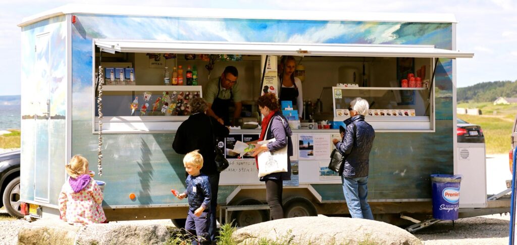 Nu er der mulighed for at berige turen med en dejlig gammeldaws isvaffel, pølser med brød eller en varm kop kaffe og lign.